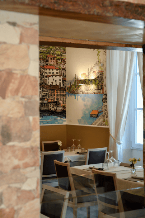 Characterized by an intimate yet informal atmosphere, our restaurant has a large air-conditioned dining room, adorned with the most representative landscapes of the Lake Como area.